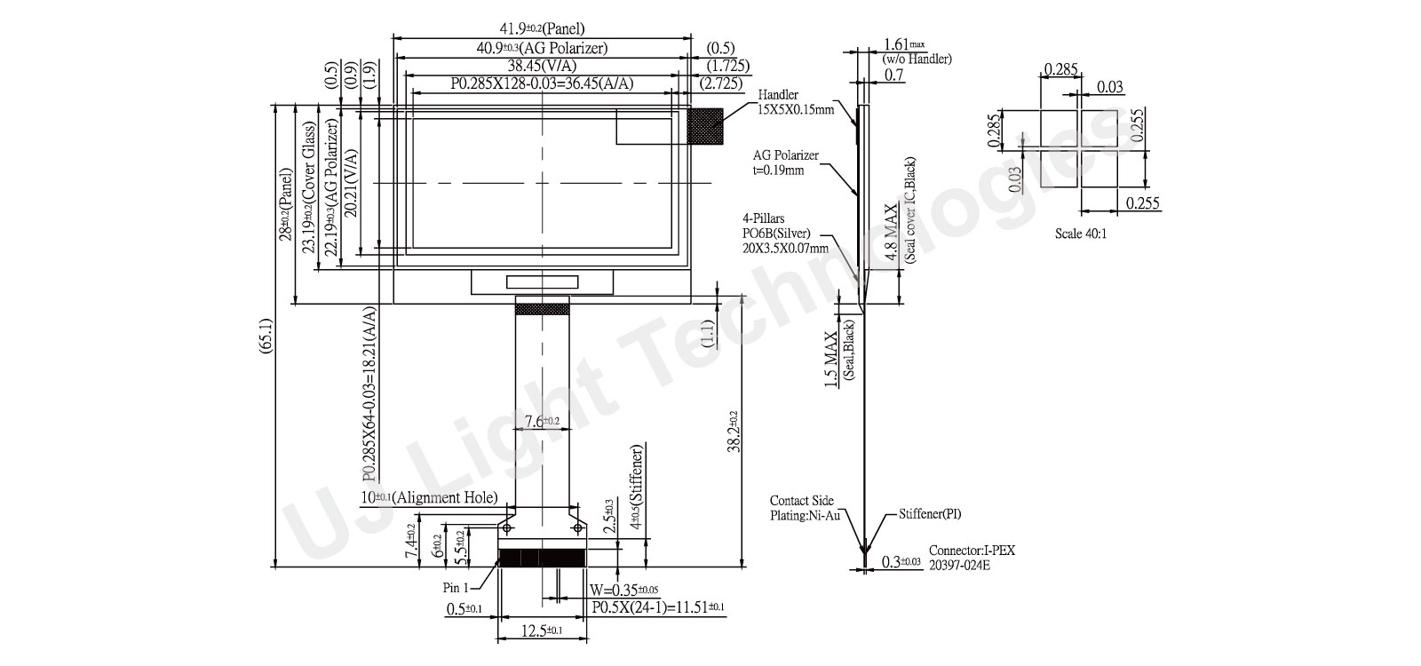 | Active area(AA) | 36.45 x 18.21 | mm |