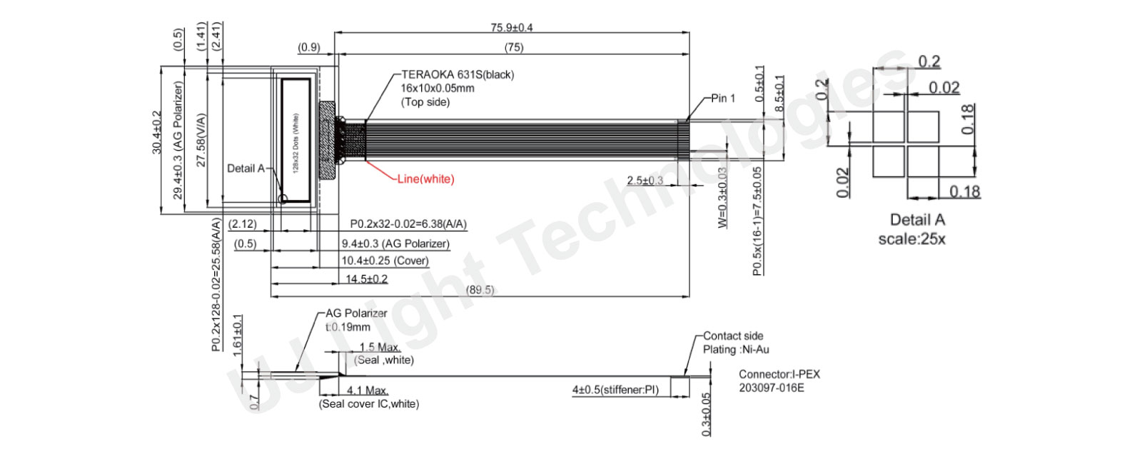 | Active area(AA) | 25.58 x 6.38 | mm |