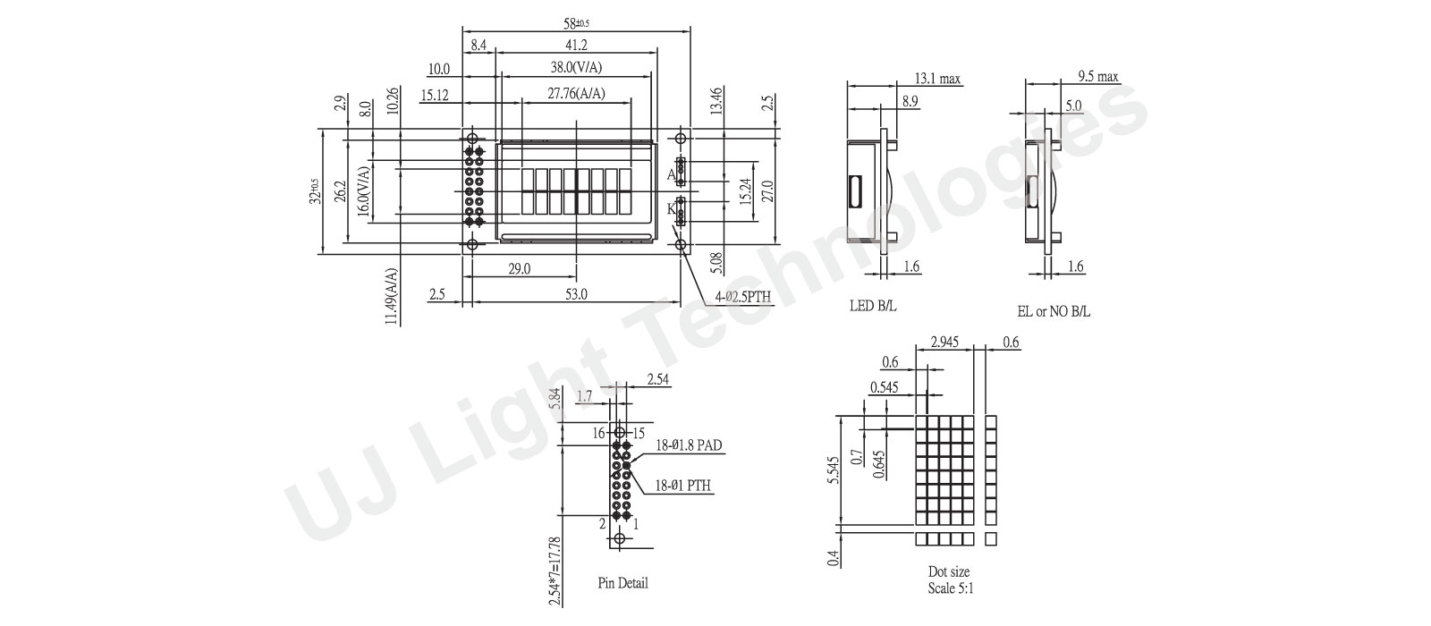 UJ-Light introduces the UC0802A monochrome character LCD module with an 8 columns by 2 rows display resolution. This high-performance product excels in delivering sharp, high-contrast displays. Widely applicable in electronic instruments, control panels, and industrial gauges, it ensures optimal visibility and reliability. The module undergoes rigorous testing to guarantee prolonged stability, offering a dependable and premium display solution for diverse industrial applications. With UJ-Light's commitment to quality, the UC0802A stands out as a versatile and reliable choice for those seeking superior monochrome character displays.