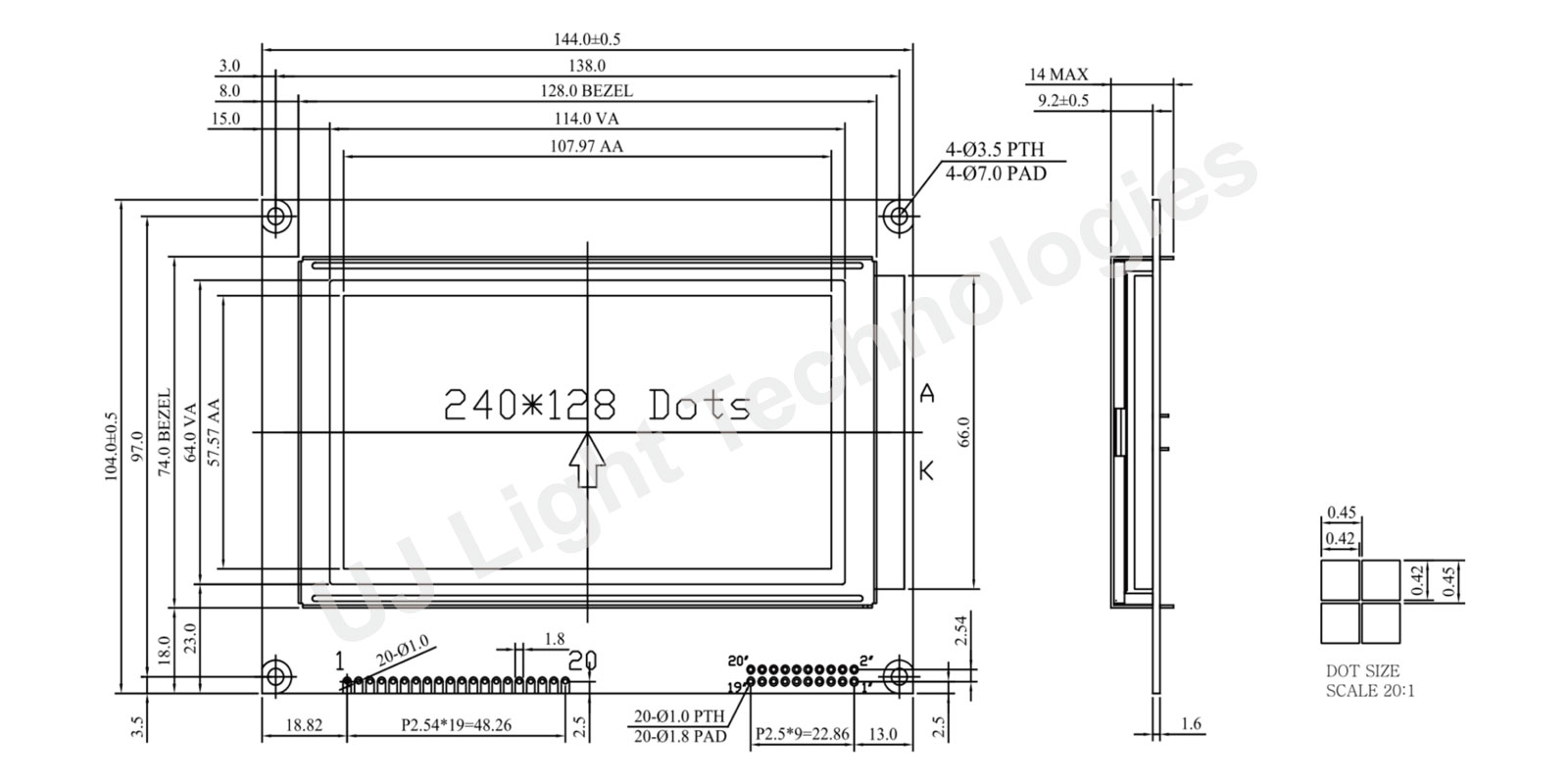 | Dot Pitch | 0.45 x 0.45 | mm |