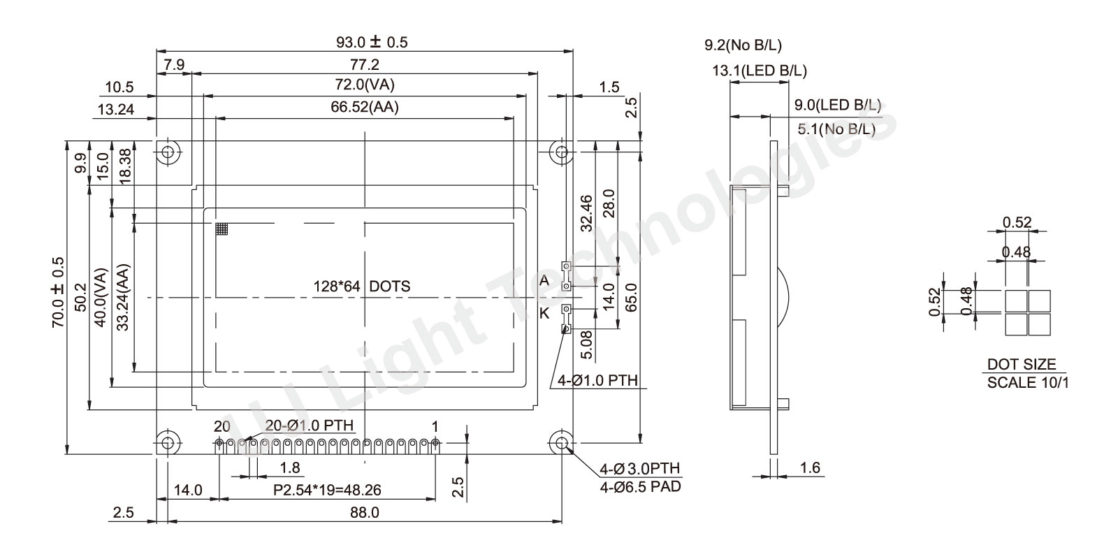 | Dot Pitch | 0.52 x 0.52 | mm |