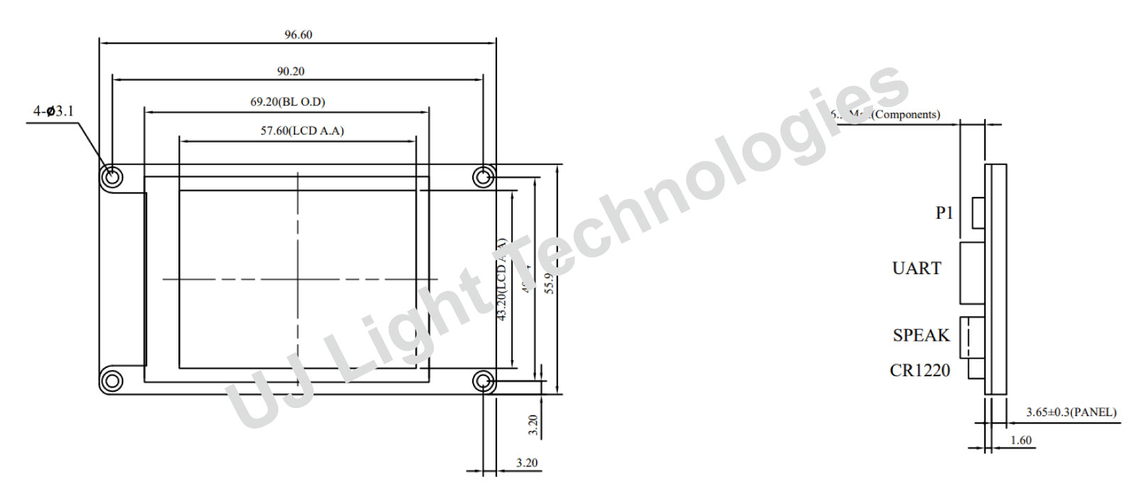 - Module(WxHxT)(mm): 96.6*55.94*11.81