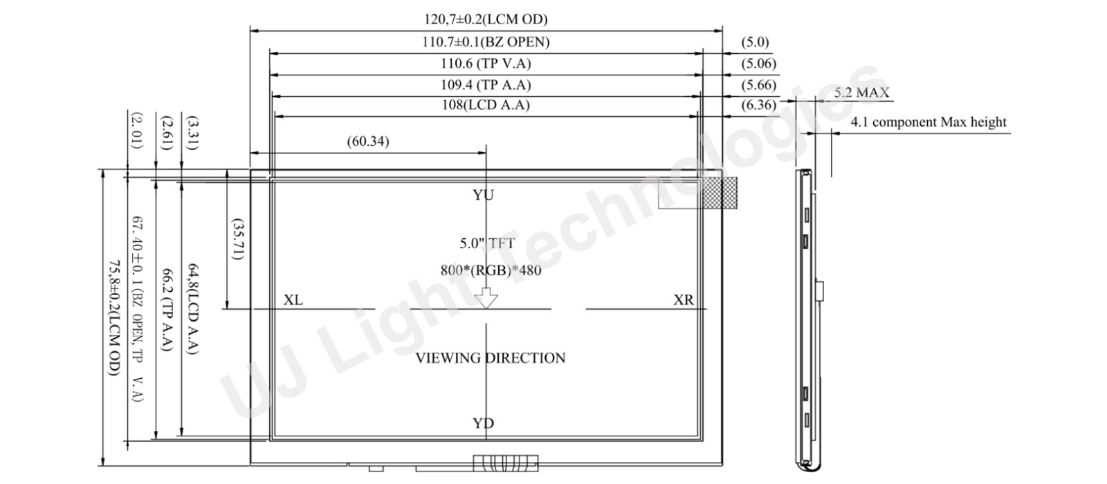 BTC050AB-GWR$ is 5.0" TFT LCD Module with 800*RGB*480 Resolution