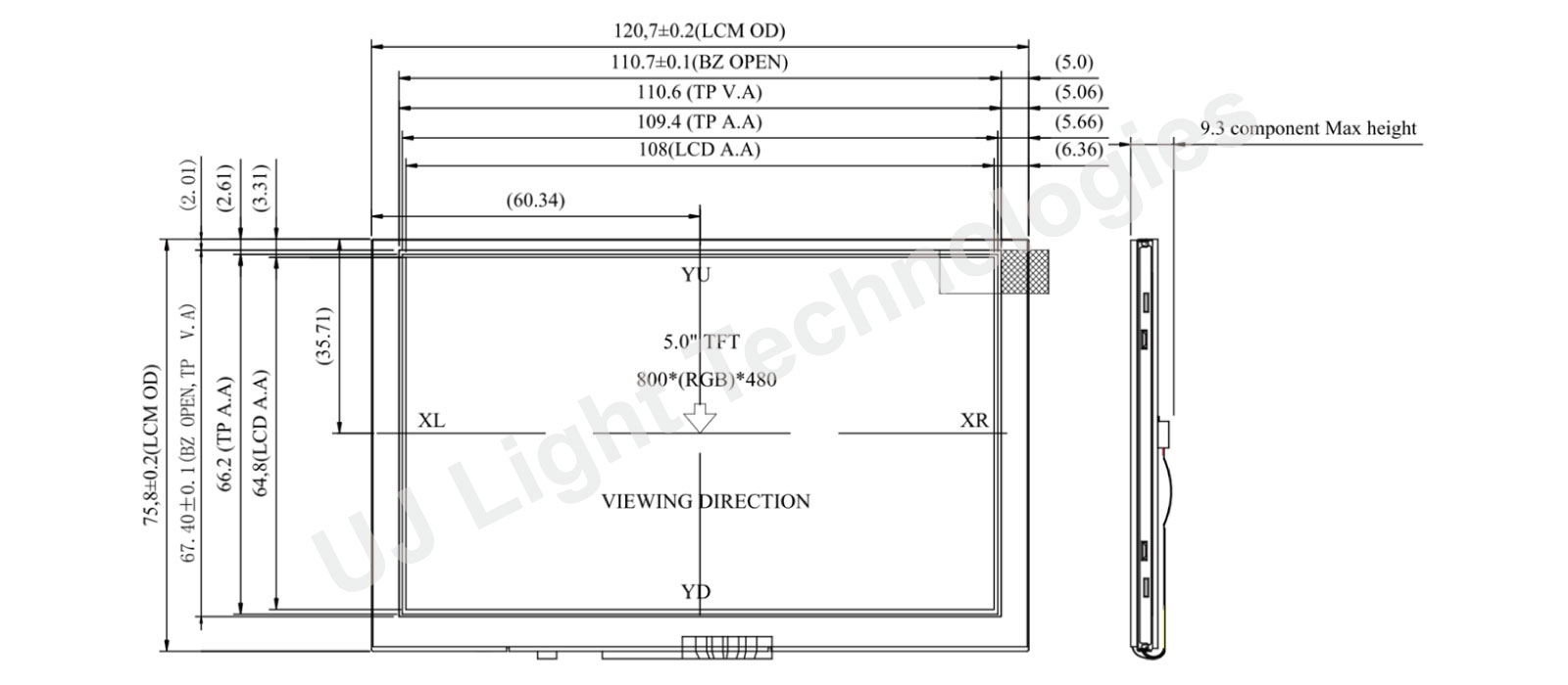 UTC050AA-GWR$ is a 5.0" TFT LCD with 800*RGB*480 resolution.