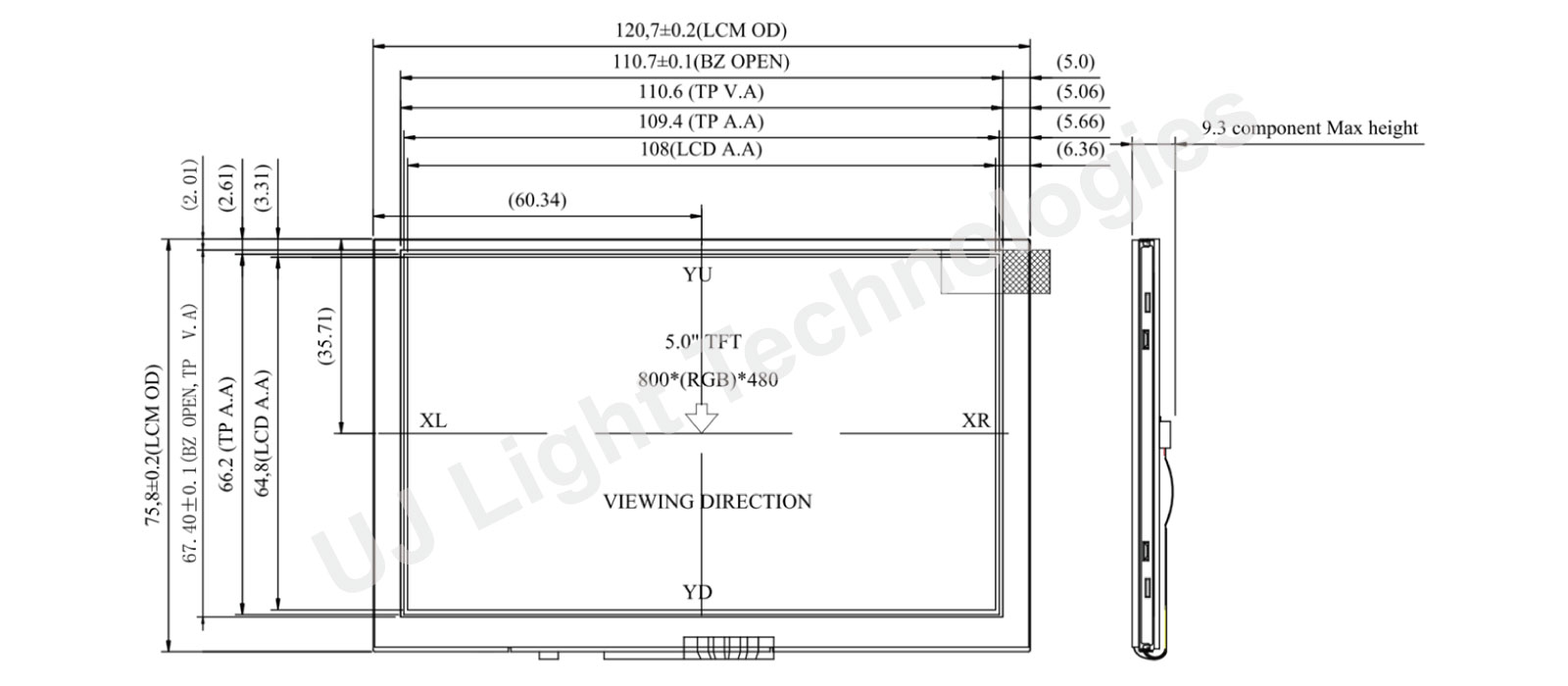 UTC050AA-EWR$ is a 5.0" TFT LCD with 800*RGB*480 resolution.