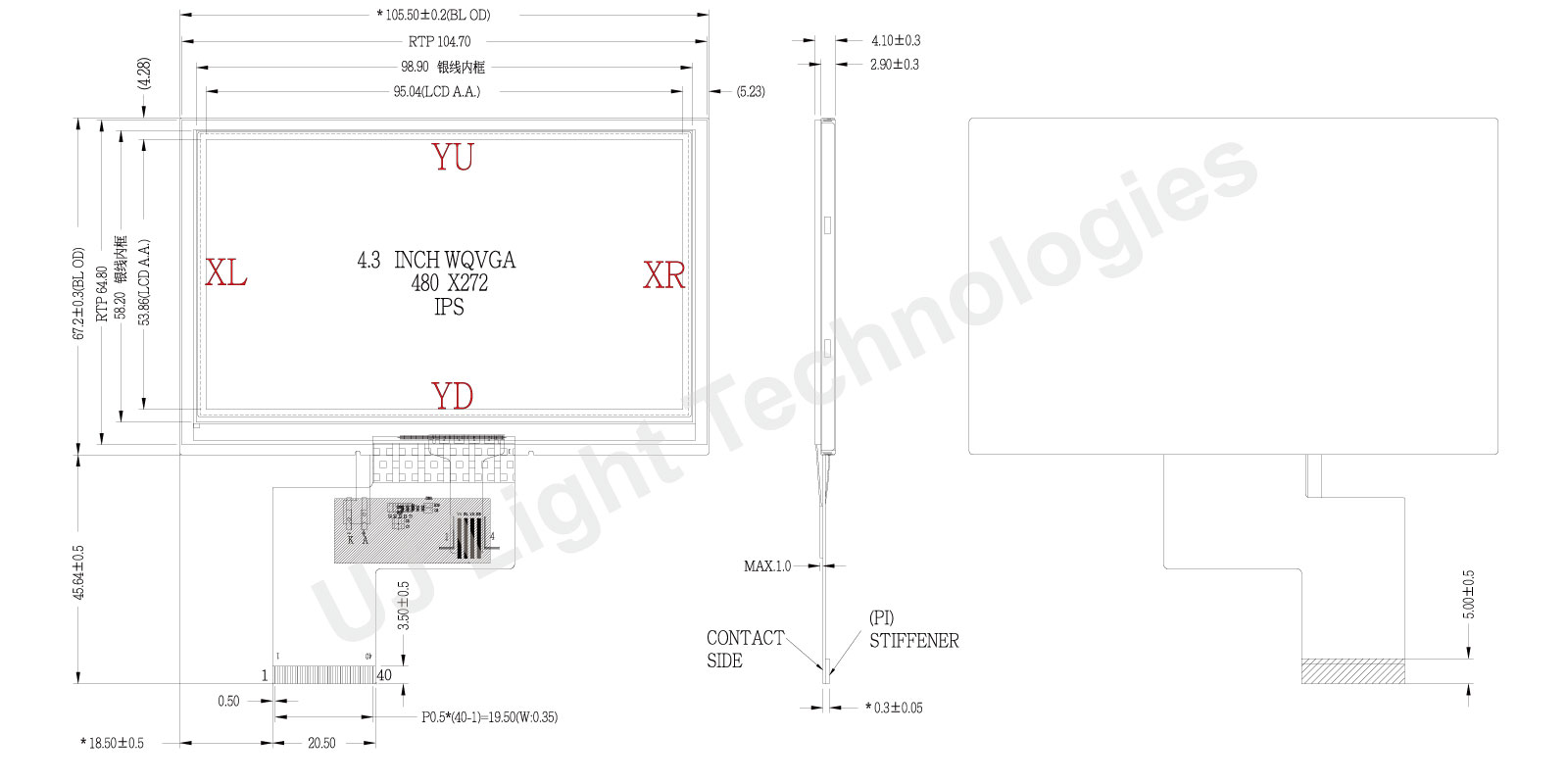 UJ LIGHT 4.3-inch TFT LCD Resistive Touch Display is an exceptional visual technology product. The high-resolution display incorporates resistive touch technology, enabling sensitive and precise touch interactions. With a compact 4.3-inch screen, it is suitable for various applications, including industrial control, instrumentation, and embedded systems. High contrast and wide viewing angles ensure clear image presentation, while the slim and lightweight design enhances versatility in applications. This display supports multi-touch functionality, providing an intuitive user experience. With stable performance and reliable quality, it is an ideal choice for enhancing interactivity and information presentation, meeting the diverse needs of various applications.