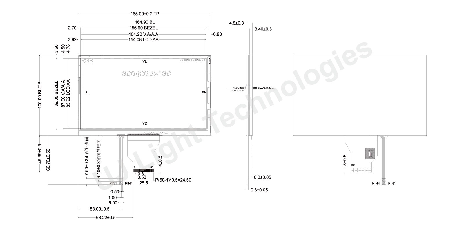 UJ-Light's 7.0-inch TFT resistive touch display stands out with distinctive features. Its high resolution and wide viewing angles ensure clear and vivid image presentation, suitable for various applications. The resistive touch technology provides a precise single-touch interactive experience. The lightweight design enhances integration into various devices. High contrast and brightness guarantee excellent performance in different environments. Stable and reliable performance is suitable for long-term operations, and the low-power design contributes to energy efficiency and environmental sustainability. Overall, UJ-Light's 7.0-inch TFT resistive touch display offers users an outstanding display solution with its unique features.